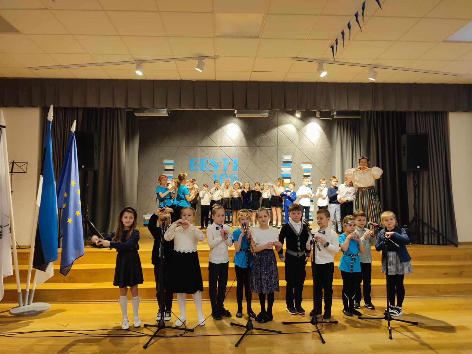 23. veebruaril tähistas meie kool Eesti Vabariigi 106. aastapäeva. Kogu koolipere oli kutsutud Eesti Vabariigi sünnipäeva kontsertaktusele. Seekord 4 pidulikku aktust oli läbi viidud kooliaulas. Väga aktiivselt võtsid nendest osa kõik meie kooli keelekümblusklasside õpilased (1.ac, 2.ac, 3.a, 4.a, 5.ac, 6.a, 7.a, 8.ac, 9.ac muusikaõpetaja Oksana Meipalu). Nad laulsid laule ja esitasid luuletusi Eestist, 24. veebruarist, kallist kodust, EV sünnipäevast, eesti lipust ja teistest südamele armsatest asjadest. Aitäh meie tublidele etlejatele (3.a Artur Piutsep ja Roxanna Singova, 4.a Diana Kozlovskaja, 3.b Milana Boltenkova ja Evita Latt, 6.a Anna- Maria Puhilas, 5.a Dominika Singova ja Timofei Kaširov, Jegor Andrejev, 7.a Anton Gulevitš, 8.a Aleksander Fedorenko, Ivan Nikitin) suurepäraste esinemiste eest!
