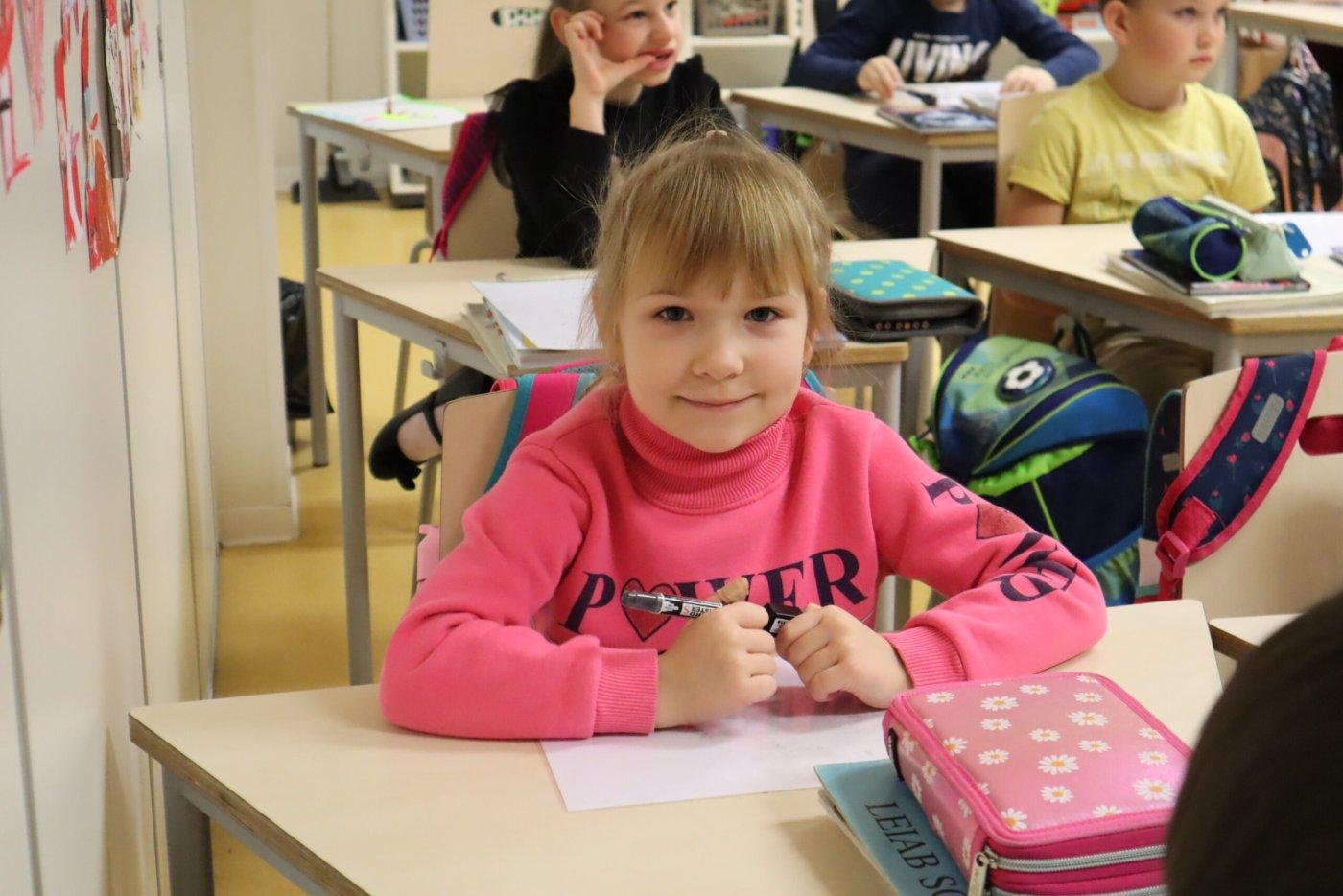 Ukraina õpilane Zlatoslava Cherevata Jõhvi Vene Põhikooli esimeses klassis.