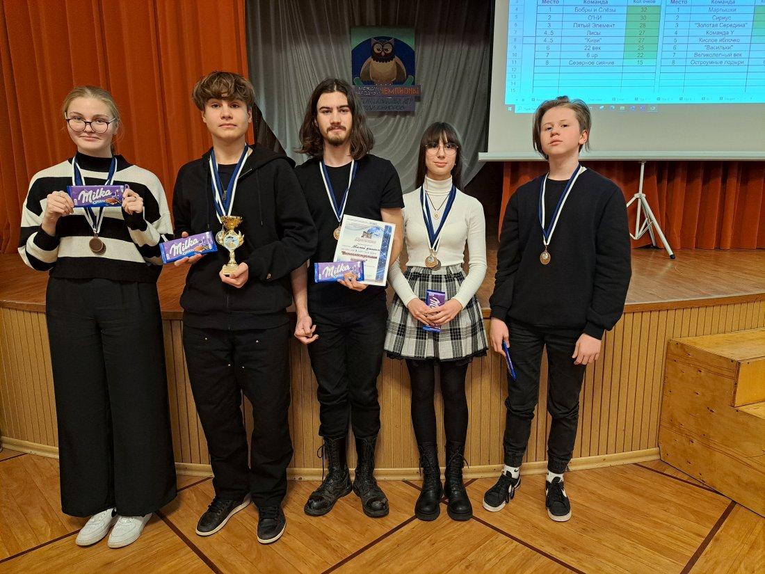 Команда "Пятый элемент" (9 "С") заняла 2 место в "Своей игре" и 3 место в "Интеллектуальном ассорти". В возрастной категории до 7-го класса команды "Великолепный век" (6 "С") - 6 место в "Своей игре" и 7 место в "Интеллектуальном ассорти", команда "Кислое яблочко" (7 "С") - 5 место в "Своей игре" и "Интеллектуальном ассорти".